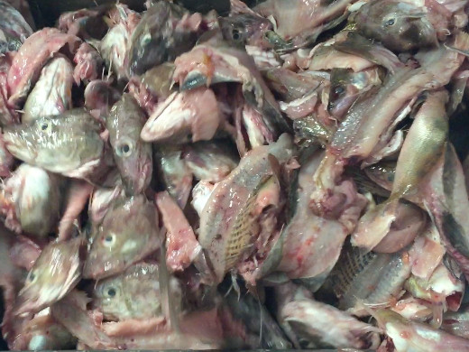 Täglich fallen große Mengen Fischreste an. Die Reste sind sehr gut als Rohstoff bzw. Futter für Mastvieh weiterzuverwerten