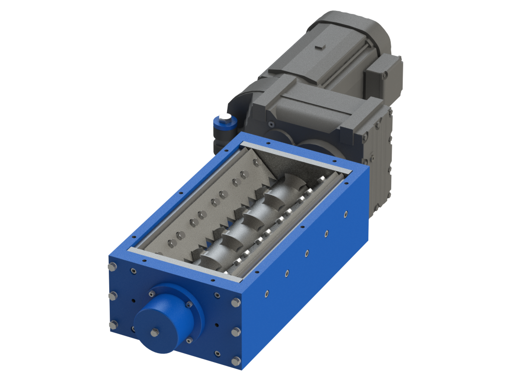 Der kompakte SC2-E 1-Wellen-Zerkleinerer eignet sich ideal für die Erzeugung definierter Korngrößen und als Nachzerkleinerungsmaschine.