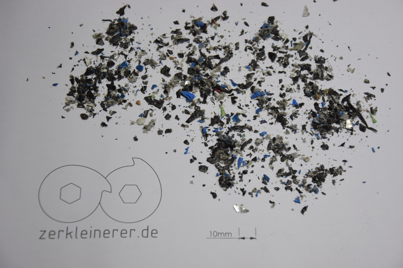 Das Schneidwerk ist ausreichend groß und leistungsstark um selbst ganze Tablets und kleine Laptops zu zerkleinern. Große Mengen Datenträger können auf einmal direkt in Aufgabetrichter geschüttet werden. Während des laufenden Betriebs ist der nachträgliche bzw. serielle Einwurf kleinerer Medien wie SSD's und Smartphones durch den Zusatzeinwurf möglich.