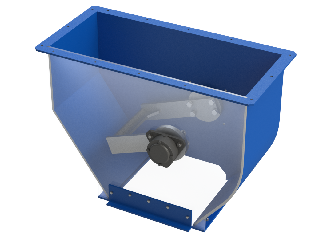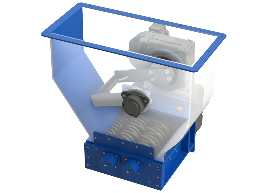 Das hohe Drehmoment des Rotorarm mischt, verformt und zerbricht das im Trichter befindliche Material. Die Leistung nachgeschalteter Zerkleinerungsmaschinen wird deutlich gesteigert.